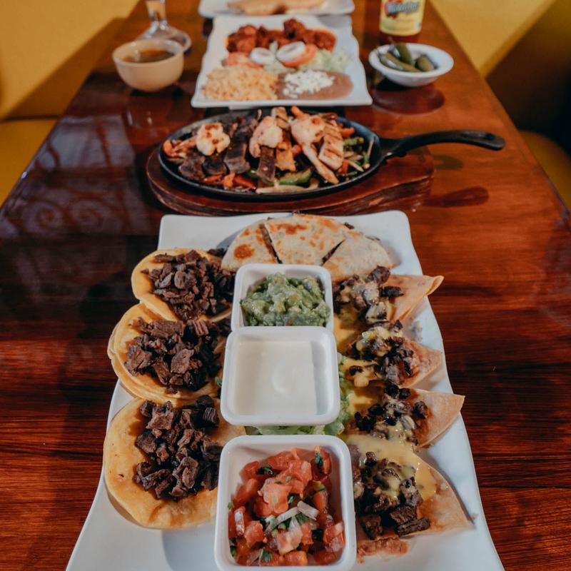 Two servings each of tasty chicken or beef quesadilla filled with pico de gallo, our famous nachos, and taquitos. Served with source cream, quacamole, jalapenos, and fresh pico de gallo.